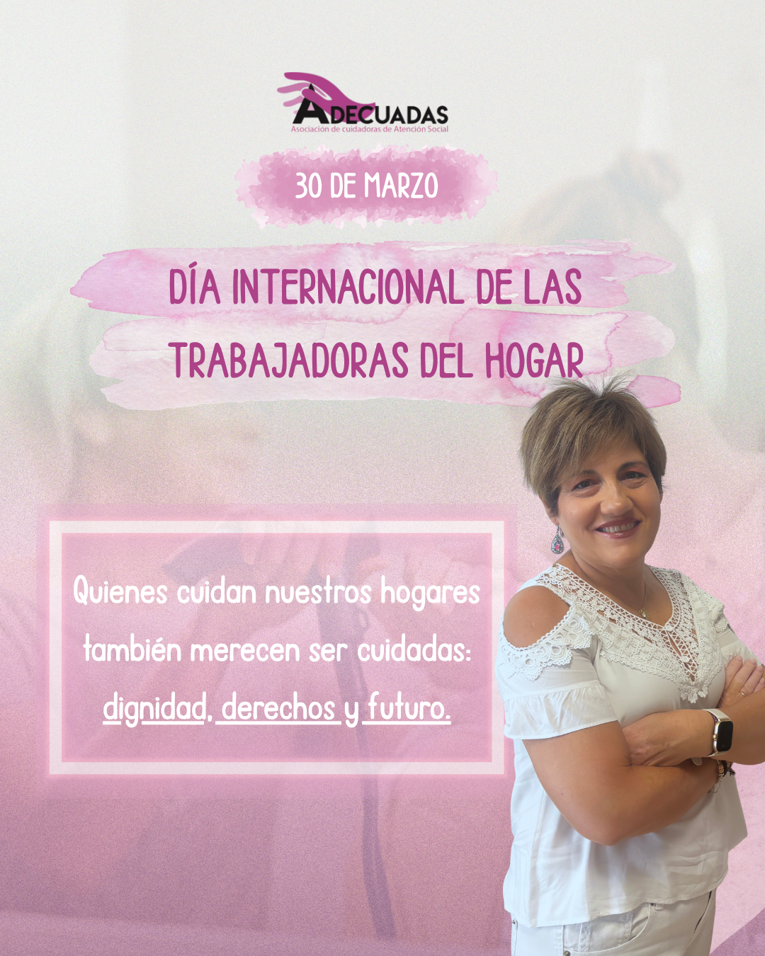 La Asociación de Cuidadoras de Atención social (ADECUADAS) ha expresado su deseo de alcanzar una mayor igualdad y derechos para las personas que trabajan en el hogar, al conmemorarse el 30 de marzo el Día Internacional de las Trabajadoras del Hogar. La entidad lleva muchos años trabajando para dignificar el trabajo de las personas cuidadoras y del sector de la atención sociosanitaria, que desempeñan sus labores en domicilios ajenos en su gran mayoría, y que tienen mucha relación con esta efeméride.
